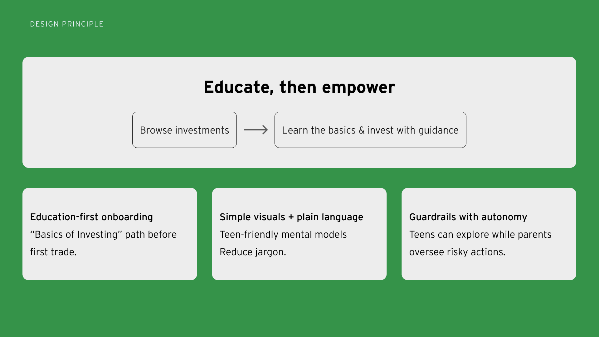 After launch, we expanded the experience to support teens progressing from their first investment toward portfolio building.