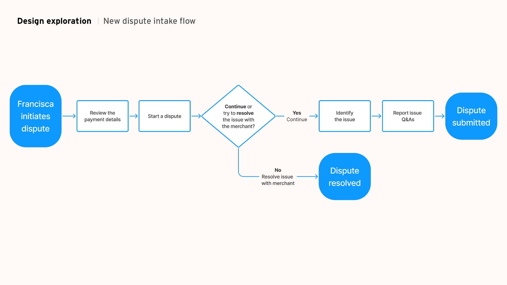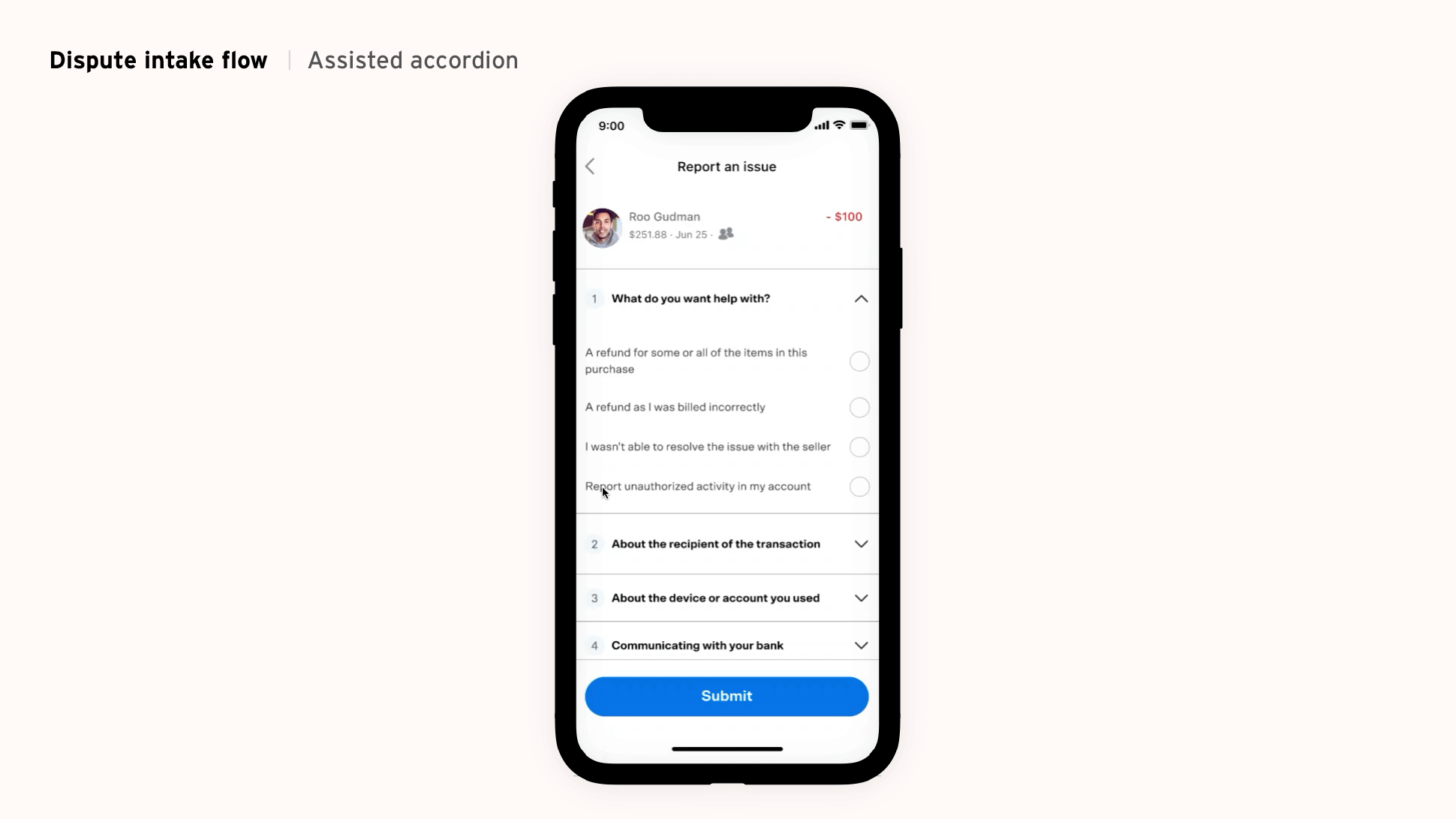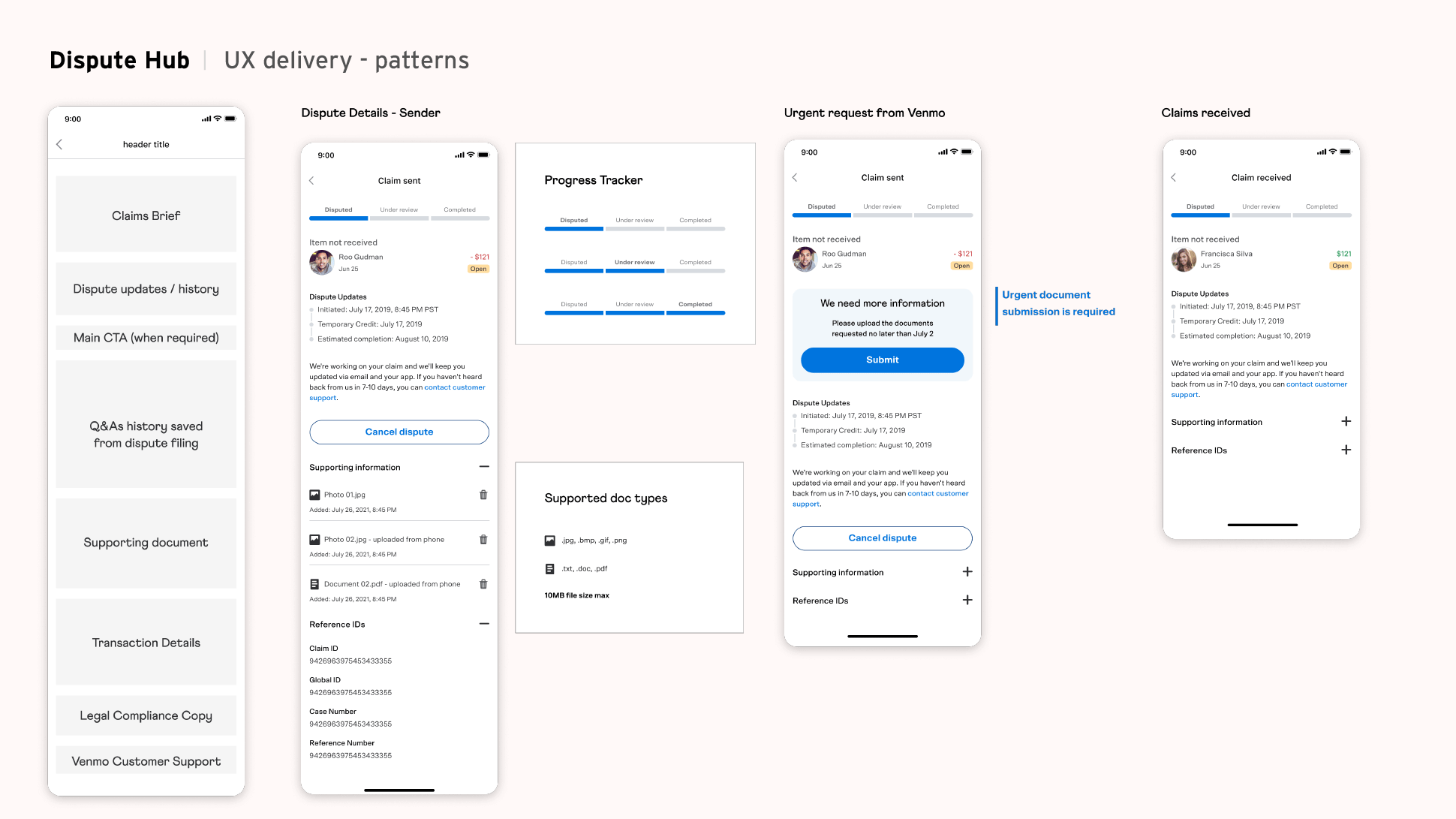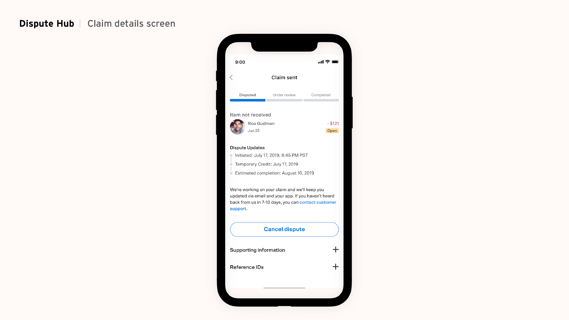 Venmo was managing small business disputes through agents via email & phone, but with increasing transaction volume, a more efficient solution was needed. I helped to introduce a new UX that leveraged a new dispute engine, reducing customer dispute calls by 40%.