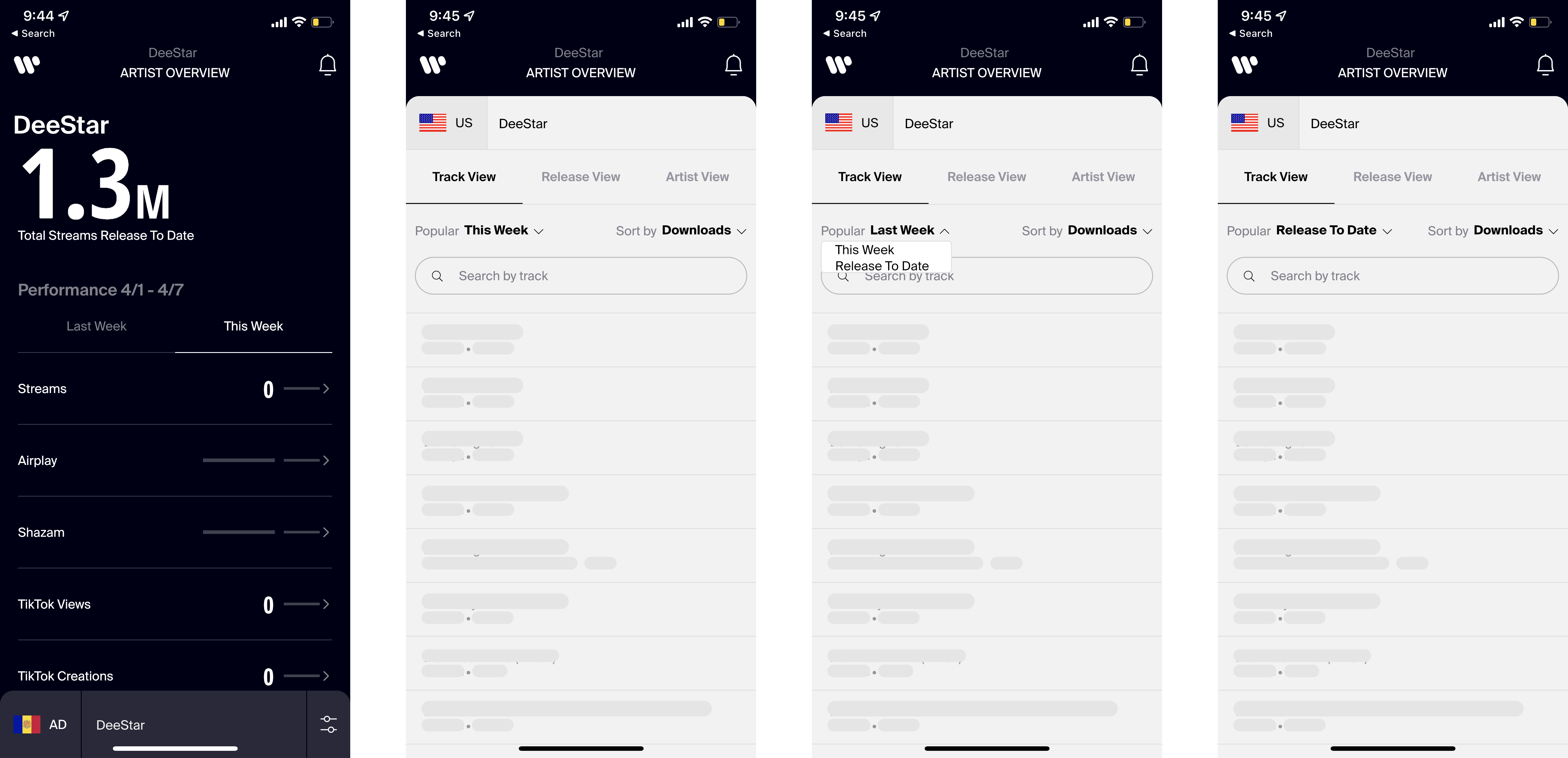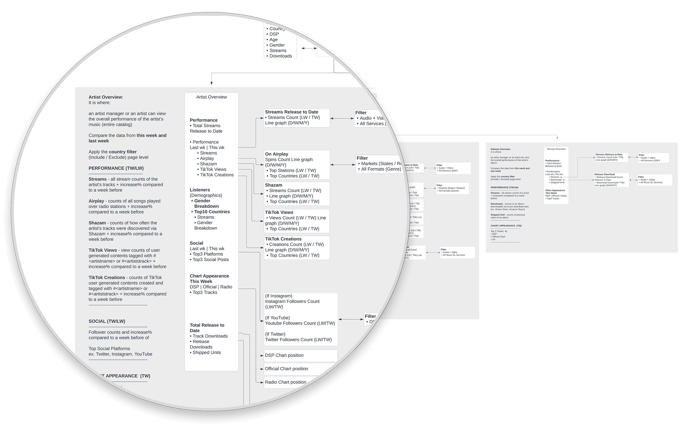 Redesigning a global navigation system that helps WMG artist managers easily find top-performing singles and releases from digital service providers and social media.