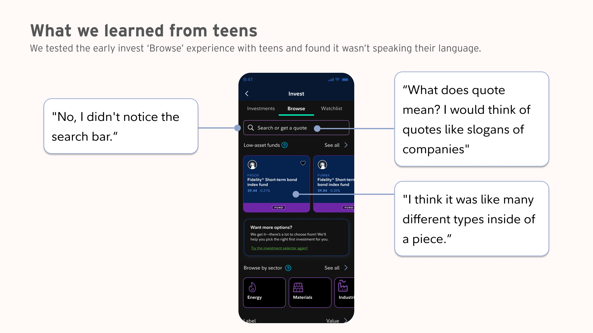Early testing revealed that traditional investment terminology was confusing for teens.