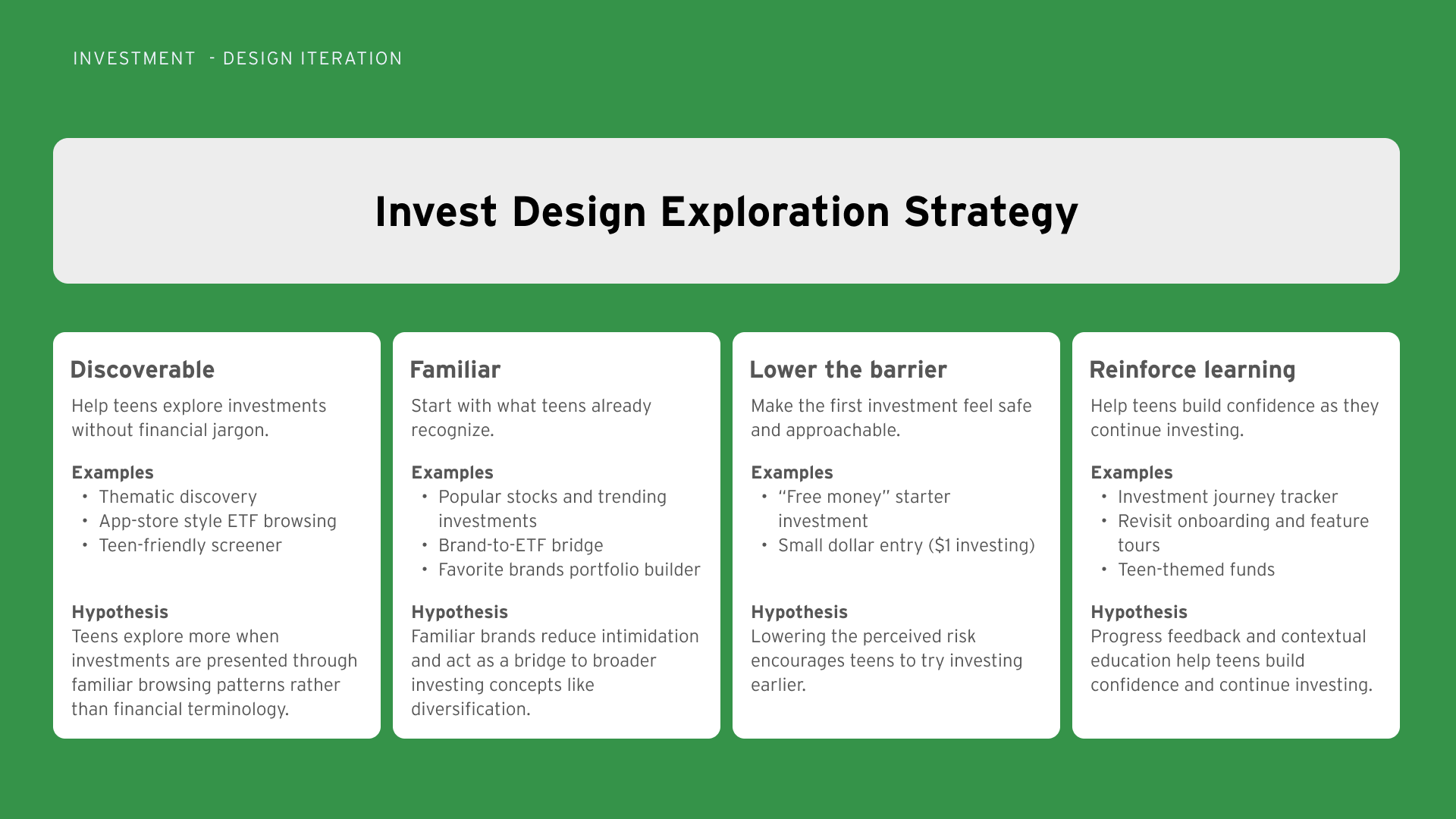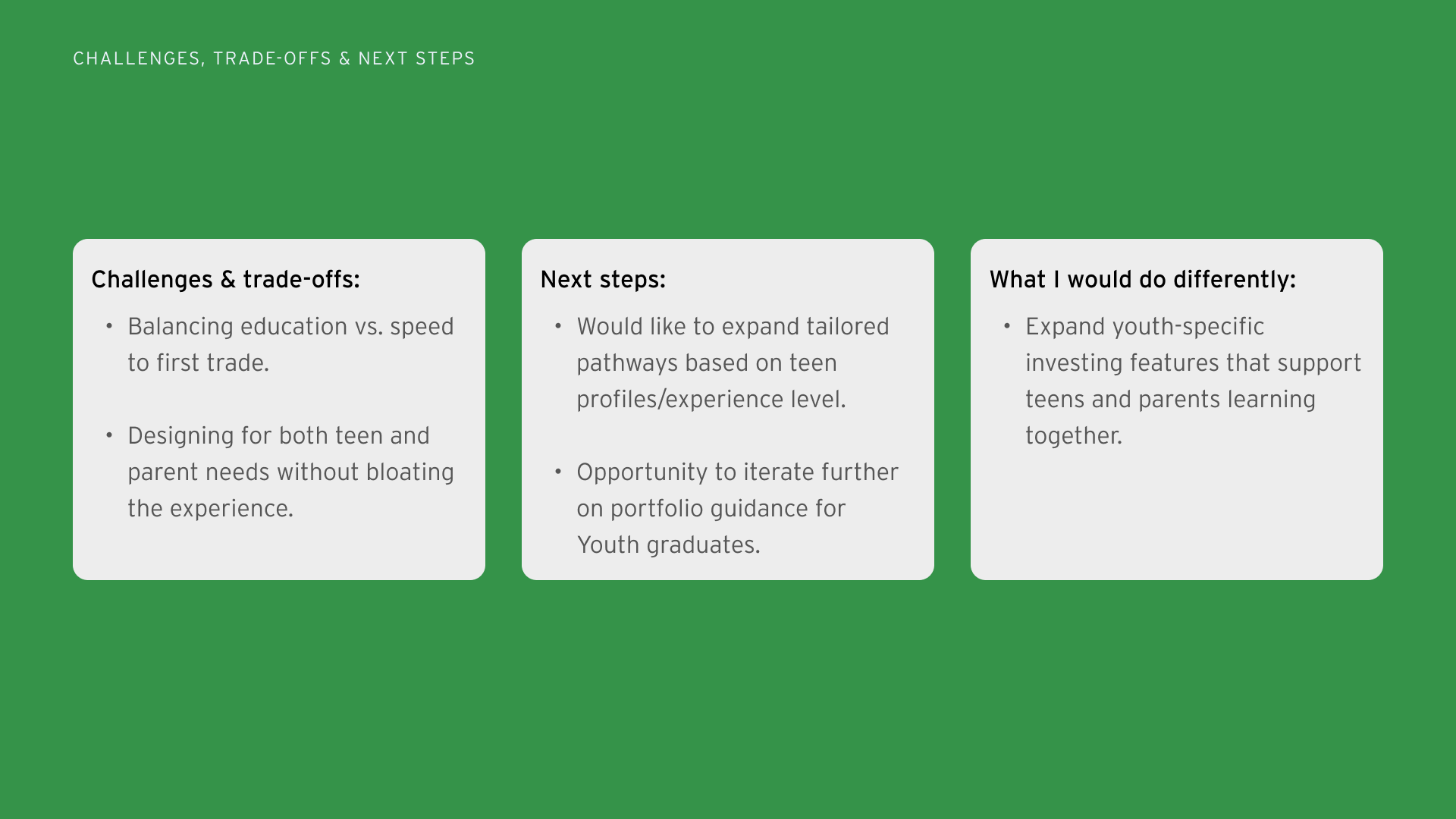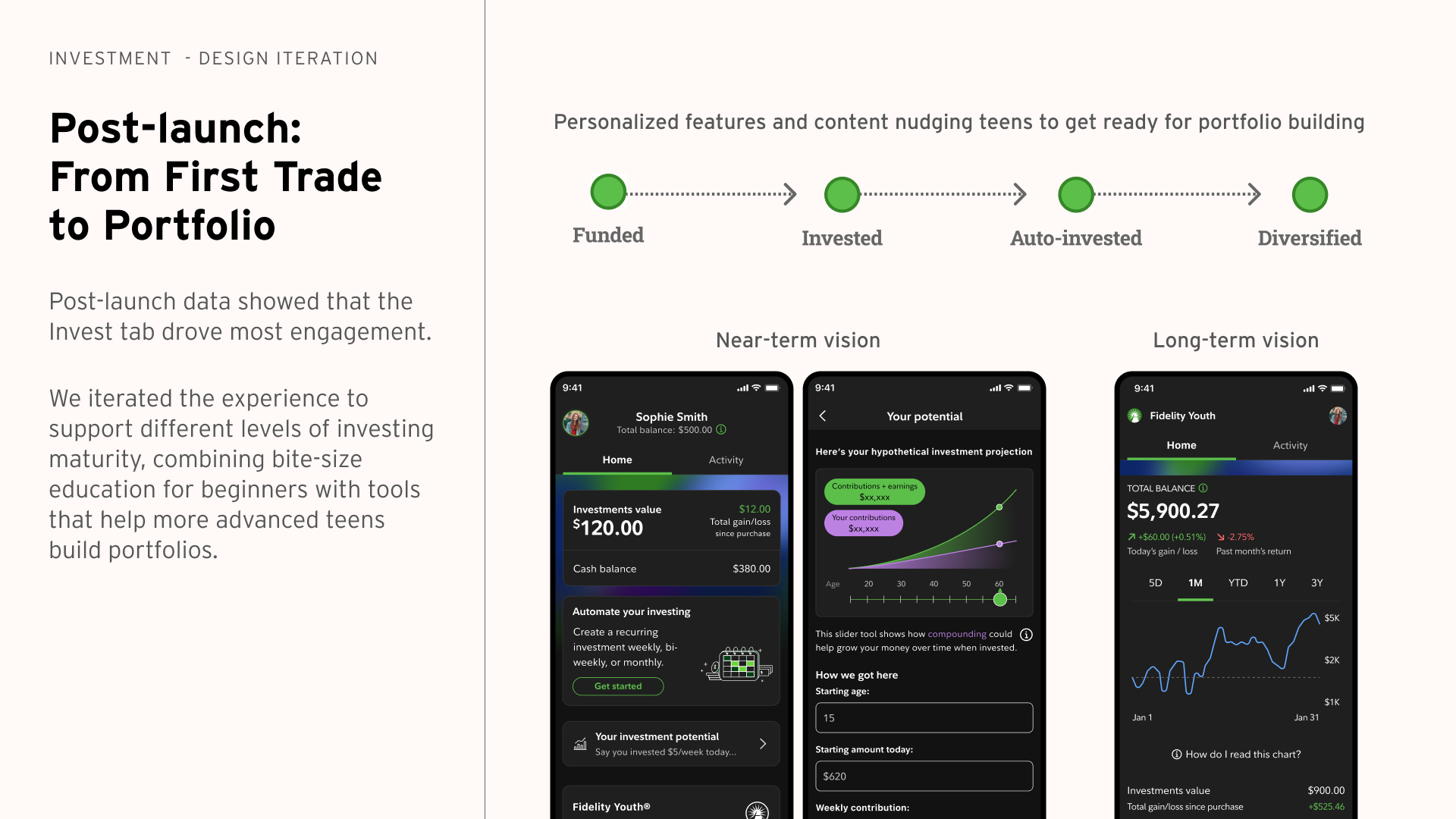 After launch, we expanded the experience to support teens progressing from their first investment toward portfolio building.